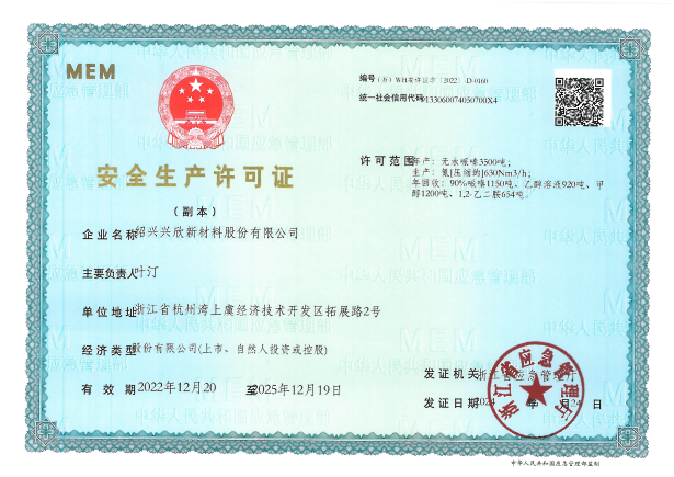 紹興興欣新材料股份有限公司成立于2002年06月27日,占地面積122畝,位于杭州灣上虞經濟技術開發(fā)區拓展路2號,現有職工200余人,專業(yè)技術人員50余人;博士、碩士研究生30余人組成的一支知識型、專業(yè)化的技術科研團隊。公司面向全球市場,專業(yè)開發(fā)電子化學品、環(huán)保化學品、醫(yī)藥中間體、高分子材料等先進新材料重點領域的省級科技型企業(yè);建有浙江上虞、安徽東至兩個生產基地。目前為“國家高新技術企業(yè)”、浙江省“隱形冠軍”企業(yè)、浙江省專精特新中小企業(yè);建有“省級”研究開發(fā)中心,共建天津大學浙江紹興研究院電子化學品研發(fā)中心。